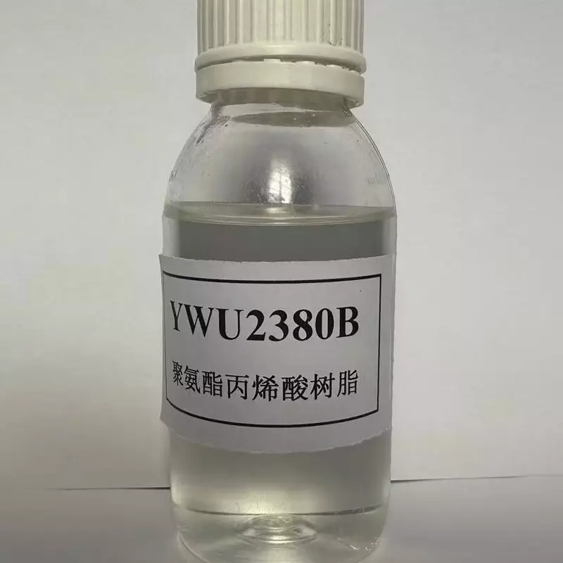 YWU2380B is a fatty acid-based di-functional polyurethane acrylic resin polymer. It has a large molecular weight, linear and flexible molecular chains, and a low molecular functionality. It exhibits excellent adhesion and flexibility, and demonstrates excellent macroscopic properties of the material, such as excellent adhesion and toughness, high gloss, excellent resistance to yellowing, weather resistance, and chemical resistance. Due to the presence of main functional groups containing acryloyloxy double bonds, it can be radiation-cured or chemically cross-linked. The product is colorless and transparent, has high adhesion and scratch resistance, high gloss without yellowing; it has a wide range of applications. It can be used alone as the main resin for UV adhesives, UV-curable coatings, and screen printing inks, etc., and can also be mixed with other acrylic systems, epoxy, polyurethane, nitrocellulose, etc. For improving the surface adhesion and flexibility, bonding strength, and yellowing resistance, transparency, etc. of the material, it has significant effects.